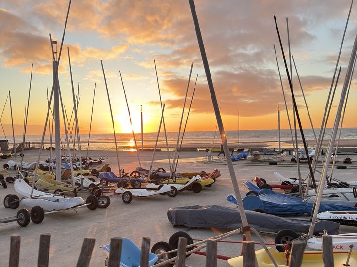 Dès l'aurore, donnez un coup d'accélérateur à votre cohésion d'équipe. Rien n'égale la sensation de liberté que procure le char à voile sur les immenses bancs de sable d'Hardelot-Plage.